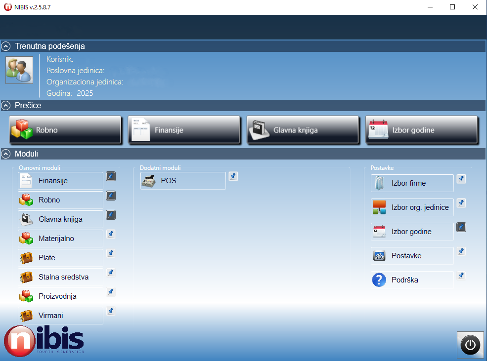 NIBIS (NextVision Business Information System) je modularni poslovno-informacioni sistem namijenjen srednjim i velikim preduzećima. Svaki modul može funkcionisati kao samostalna aplikacija, dok njihova integracija pruža maksimalnu funkcionalnost i čini NIBIS idealnim rješenjem za savremeno poslovanje. ljučne prednosti NIBIS sistema: Pojednostavljuje i ubrzava poslovne procese Olakšava svakodnevni rad korisnicima Omogućava jednostavan i brz pristup svim relevantnim podacima Sistem omogućava detaljnu evidenciju podataka i generisanje izvještaja, a sastoji se od sljedećih modula: Finansijska operativa Robno-materijalno knjigovodstvo Glavna knjiga Stalna sredstva Obračun plata POS (prodajno mjesto)